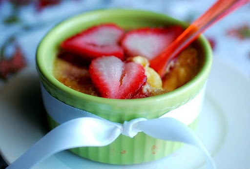 When ready to serve, sprinkle a teaspoon of sugar over each custard, brûlée using a torch, and serve.