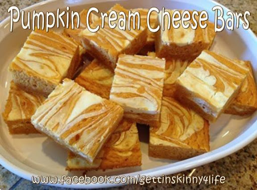 In a 9x13 pyrex dish- sprayed with PAM- add HALF of the cake –pumpkin mix. Then smooth it out with a rubber spatula. Drizzle half of the cream cheese over the top of it and take a small spatula to smooth it over the top. Add remaining cake-pumpkin mix & also the remaining cream cheese just making layers. Finally take a butter knife- stick it into the mix and go back & forth over the top of the cake making figure “8’s” - to blend it a bit.