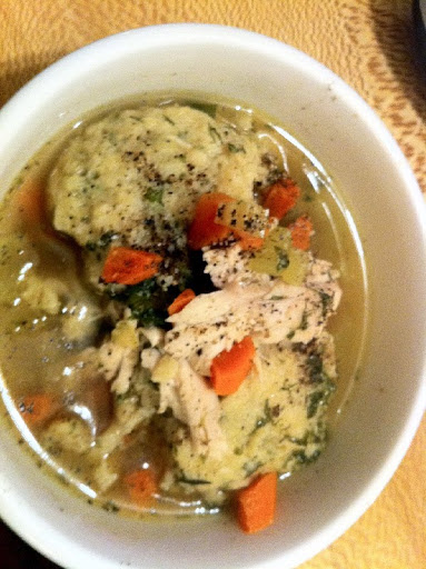 To serve the soup, return the stock to the pot and reheat, adding the diced carrots, celery, dill, and parsley. Shred the reserved chicken breast meat into large pieces and add to the stock. Simmer over low heat for 5 minutes to cook the vegetables and reheat the chicken. Season, to taste, and serve as is, or ladle each serving over 2 warm Matzo Balls.