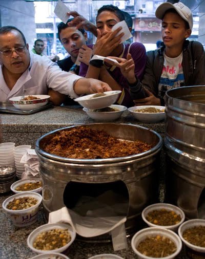 The ultimate Egyptian street food, this rib-sticking dish consists of two pastas, two pulses, fried onions for a crunchy contrast, and a spiced tomato sauce that ties it all together.