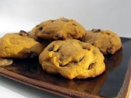 With a spoon, mix cake mix & pumpkin together in a large bowl. Stir in chocolate chips & nuts. Drop by rounded spoonfuls onto a lightly greased cookie sheet.