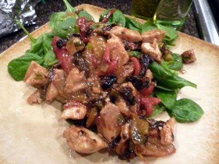 In a separate pan, sauté green onion and garlic in 2 T. olive oil for about 2 minutes. Add roasted peppers, juice of peppers, and sun dried tomatoes. Cook for 2 more minutes. Push all to side of pan and add butter and flour and stir to make rue. Mix in with other ingredients and add orange juice. Cook (stirring frequently) until sauce boils and thickens. Stir in cooked chicken and serve.