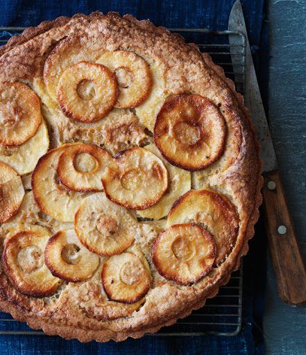 Line tart shell with apples. Pour filling over (if using rectangular pan, you may have 1/2 cup excess filling). Bake until apples are deep golden brown and filling is puffed, cracked, and set in center, 70-80 minutes.