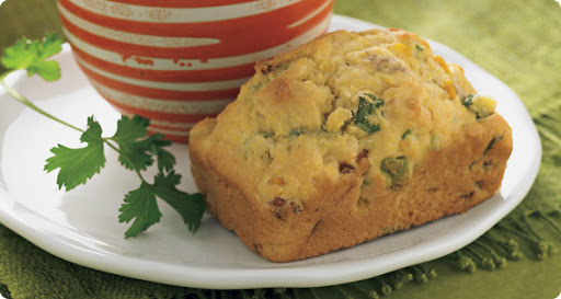 as directed, adding 1 cup drained, canned corn, 1/2 cup cooked and crumbled bacon, 1/2 cup shredded cheddar cheese and 1/4 cup chopped green onion. Divide batter into three, lightly greased 5x3x2-inch mini loaf pans. Bake 23-27 minutes or until light golden brown.