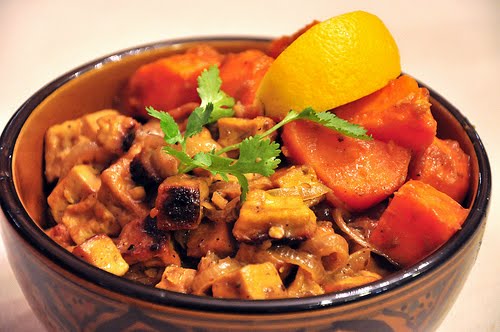 Black Pepper Tofu Curry, Sweet Potatoes with Chile Tamarind Sauce
