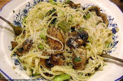 Spaghetti with a “Light Mushroom & Scallion Alfredo”