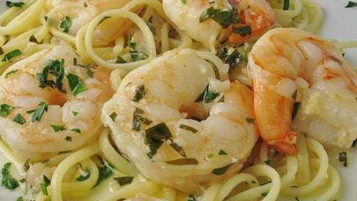"Well-rounded seafood and pasta dish. Good with any pasta; angel hair is less filling."