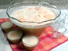 Combine first 3 ingredients until slightly mushy. Can be mixed on low speed of mixer. Pour in ginger ale slowly while mixing. Mixture should be thick and slightly lumpy. Fills large punch bowl.