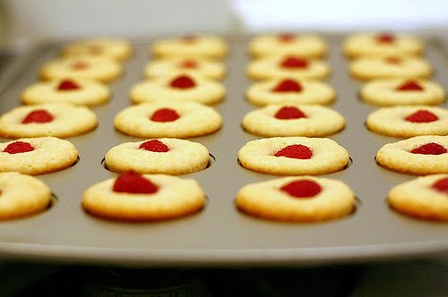 Divide batter among muffin cups (the 2/3-3/4 level worked well for minis). Top each large muffin with 4 raspberries (or mini muffins with one each). Bake muffins until lightly browned on top and tester inserted into center comes out clean, about 35 minutes (baking time was on the shy side of 20 minutes for mini muffins).