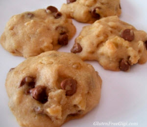 *Gluten Free Gigi Tips: Use your favorite all-purpose gluten free flour blend for this recipe. You can find suggestions for making your own flour blends in the Breads area of the Recipe Index on this website. I use Ener-G brand egg replacer powder. Use your preferred oil in liquid form. Using dairy or plant-based milk will change the texture of this cookie. You may also want to add other ingredients like chopped nuts, toasted coconut, other dried fruit or sunflower seeds to create your favorite taste combination. To make sure the cookies bake up properly, keep the amount of extras to 1 cup total. Makes 1 dozen cookies.