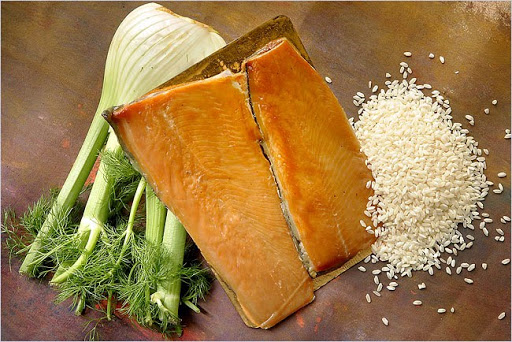 - 1/2 pound boneless, skinless smoked trout, in small chunks