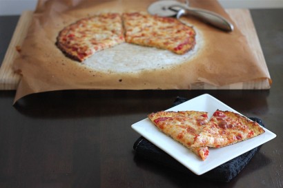 Test your patience and allow it to cool for a minute or two. Probably closer to two. Then using a pizza cutter and a spatula, serve up your delicious grain-free cauliflower crust pizza!