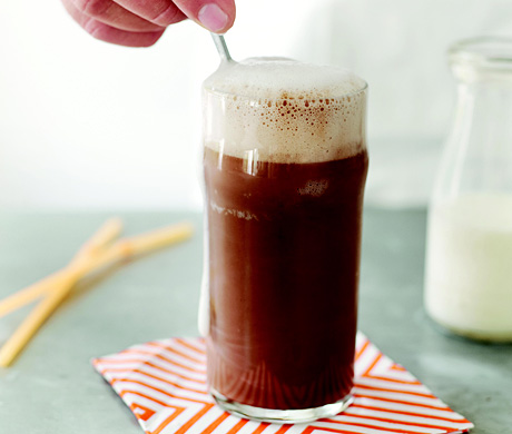 The name egg cream is misleading—in actuality, the soda fountain classic contains no eggs and no cream. The three winning elements are milk, flavored syrup, and seltzer. For an icy beverage like top soda jerks used to craft, it's best to frost glasses in the freezer.