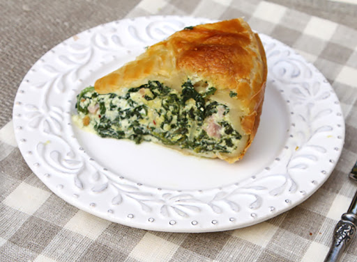 Add the crumbs to the spinach in a bowl, and add the ricotta, parmesan and cubed ham, and mix well.