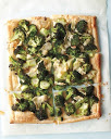 Preheat oven to 400 degrees. On a lightly floured work surface, roll out puff pastry to a 12-inch square; transfer to a parchment-lined baking sheet. With a paring knife, lightly score pastry 1/2 inch from edges, creating a border. Toss together broccoli, oil, garlic, and red-pepper flakes; season with salt and pepper. Scatter broccoli mixture evenly on pastry and sprinkle with Pecorino. Bake until pastry is deep golden and puffed, about 30 minutes. Let cool slightly before cutting into squares. Serve warm or at room temperature.