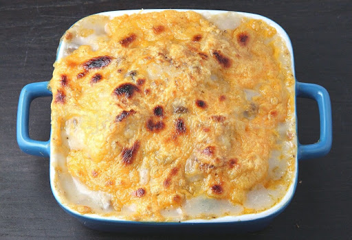Sprinkle cheese over soup layer. Mix bread crumbs and paprika and sprinkle over cheese layer. Drizzle melted butter over the top of the bread crumbs.
