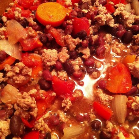 In a medium sized pot heat oil and sauté onions. Add ground turkey, chili powder, salt, paprika, and pepper to sautéed onions. Stir fry until turkey is no longer pink. Add all the other ingredients and bring to a boil. Reduce heat and simmer for 20 minutes.