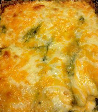 In a 9×13 casserole dish. Place a layer of green chili’s. Add chicken on top of chili’s. Top with shredded cheese (about half of your mixed cheese) Add a layer of chili’s on top of cheese.
