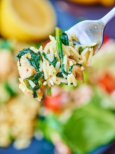 "This is a simple recipe with a spicy kick for garlic lovers. It is my combination of a much loved linguine and clam sauce dish and a recent introduction to orzo pasta. I have several variations for this recipe. Add more red pepper for extra spice. Substitute the chicken for clams or shrimp. Substitute the spinach leaves for diced tomatoes. I've also added spices such as basil, rosemary and oregano bringing a distinct Italian flavor to the dish."