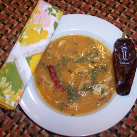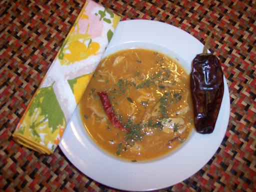 When done, remove the bay leaves and herbs. Place the chicken in a bowl to cool. Strain the vegetables into another bowl. Defat the chicken broth and pour into a 4-5 quart saucepan. Puree the vegetables in a blender, Cuisinart or with an immersion hand blender in the broth itself. You now have a richly colored and savory soup base. Debone and shred the chicken and add it to the soup.