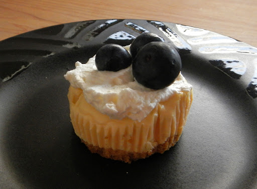 BEAT whipping cream with mixer on high speed until stiff peaks form; spread onto cheesecakes. Top with blueberries and zest.