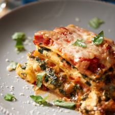 You won't even miss the pasta in this lasagna. The cream cheese and spinach gives it a great flavor. I bake mine and then cut it into 9 squares and put them into individual freezer containers to microwave at work. Yummy!