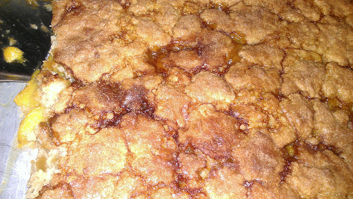 Mix 3 tablespoons white sugar and 1 tablespoon cinnamon and sprinkle onto cobble. Bake until topping is golden, about 30 minutes. Makes 8-10 servings.