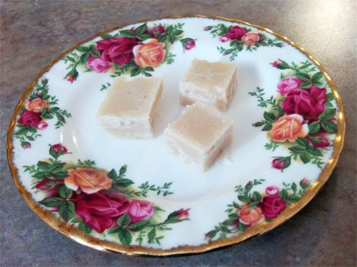 Place in a 9x9 square casserole dish and flatten. Refrigerate until solid. Cut into 1 inch squares.