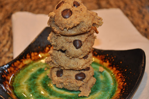 Preheat oven to 350. Mix the flour and the baking powder in a medium bowl and set aside. In a large bowl, mix the sugar, peanut butter, oil and coconut yogurt together. Add in the egg. Add in the flour. Lastly, fold in the chocolate chips. Spoon batter onto a lined baking sheet and bake for 10-13 minutes.