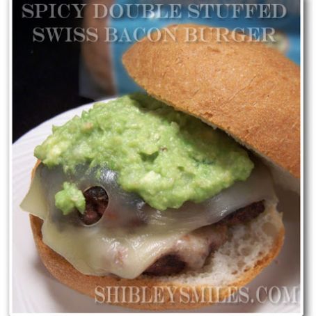 Place about 1/4 cup or less of Swiss cheese in the middle of one patty.