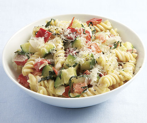 The season’s most plentiful vegetables come together in this satisfying pasta dish. To make it even heartier, try adding diced grilled chicken.