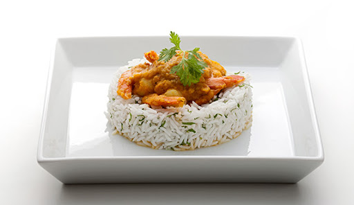 Servir el Curry de Camarones y espolvorear hojas de cilantro picado. Acompañar con arroz Basmati