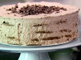To assemble the cake, arrange chocolate chip cookies flat in an 8-inch springform pan, covering the bottom as much as possible. (I break some cookies to fill in the spaces.) Spread a fifth of the mocha whipped cream evenly over the cookies. Place another layer of cookies on top, lying flat and touching, followed by another fifth of the cream. Continue layering cookies and cream until there are 5 layers of each, ending with a layer of cream. Smooth the top, cover with plastic wrap, and refrigerate overnight.