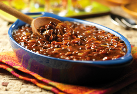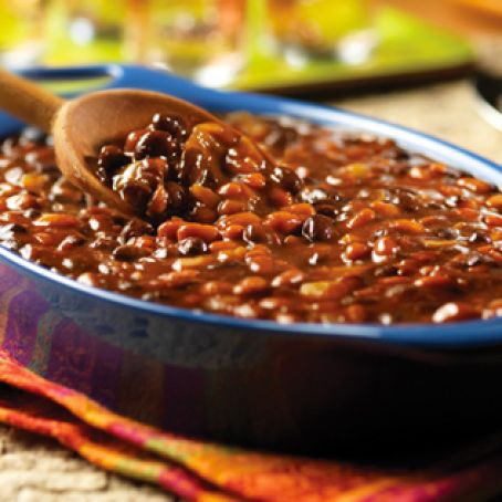 Stir the picante sauce, molasses, mustard, pork and beans and black beans in the saucepan and heat to a boil. Reduce the heat to low. Cook for 5 minutes or until the mixture is hot and bubbling.