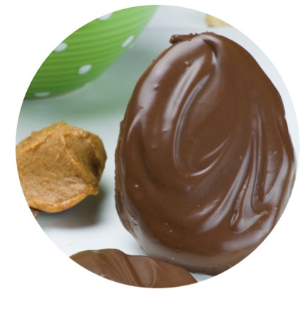 Using a fork, dip each egg into melted chocolate to cover completely. Gently tap the fork to drip of the excess of chocolate. Place chocolate covered eggs on the parchment paper lined tray. Refrigerate until chocolate has set.