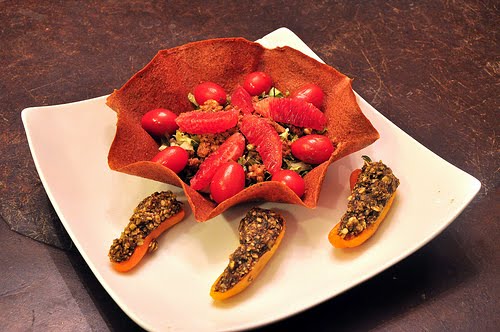 Taco Salad with Blood Oranges, Stuffed Mini-Peppers