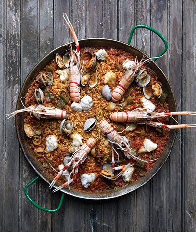 This recipe hails from coastal Spain and calls for a plethora of seafood. Ask your fishmonger for the freshest langoustines or head-on shrimp available. We ran the recipe with David Rosengarten's feature "The Art of Paella" (April 2010).