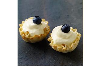 Place prebaked phyllo shells on a cookie sheet; bake until crispy, about 5 minutes. Let cool and then spoon about 2 teaspoons lemon mixture into each shell. When ready to serve, garnish each with a berry. Yields 1 tartlet per serving.