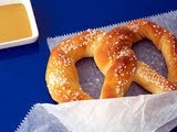 Melt the remaining 8 tablespoons butter in a shallow dish. Dip the hot pretzels in the butter, turning to coat; place on a wire rack to let excess butter drip off. Serve the pretzels warm with the sweet mustard sauce.