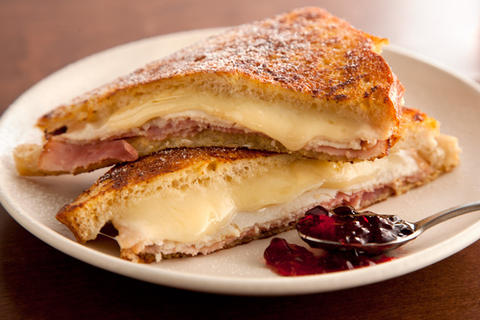 Melt the butter in a large nonstick frying pan over medium-low heat until foaming. Using your hands, place 1 sandwich in the reserved egg mixture, flipping to coat both sides. Place the sandwich in the frying pan. Repeat with the second sandwich.