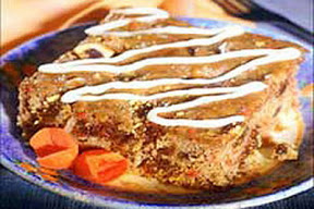 MIX powdered sugar and orange juice until well blended. Drizzle over cake. Cut into 16 pieces to serve.