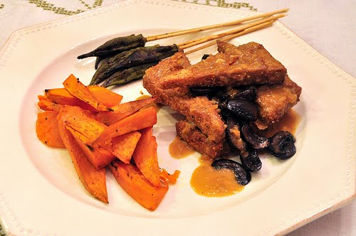 Buttermilk Tofu, Smoked Sweet Potato Fries, Grilled Okra