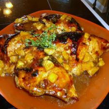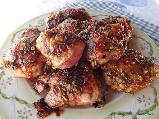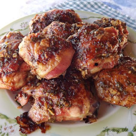 Bake chicken for about 30 minutes. Take out of the oven and brush each thigh with glaze. Place back in the oven and let finish cooking for at least 10 more minutes, or until juices from the chicken are running clear.