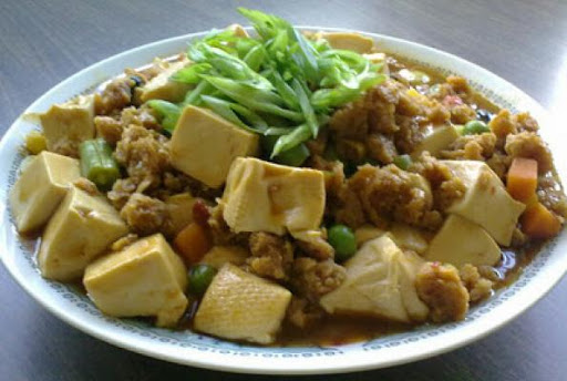 1) Fill a large pot with water and heat to boiling. Place the tofu on a cutting board and slice horizontally in half. Then cut each half into quarters to make large cubes. Blanch in boiling water for 3 minutes and drain.