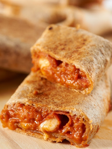 Bake for 15 minutes, flip the tortillas over, and bake for an additional 5 minutes. Let the pizza rolls cool for 5 minutes before serving. Serve with leftover sauce for dipping.