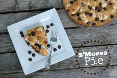 Using the remaining crust, pat sections of dough on top of and around all the marshmallows (they will still show through and that is great!). Sprinkle with 1/4 cup chocolate chips, then bake 20 minutes until lightly browned.