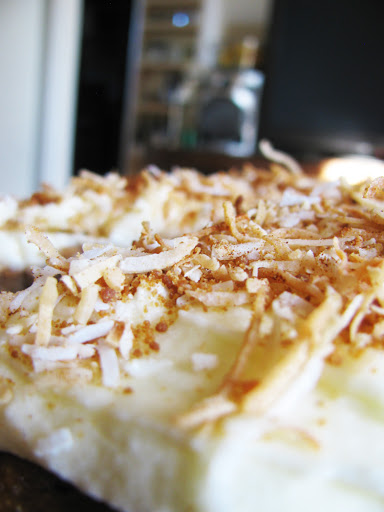 Melt 2 T butter over low heat and add 3/4 C of the coconut and stir until browned. Blot oil by transferring to a paper towel covered plate.