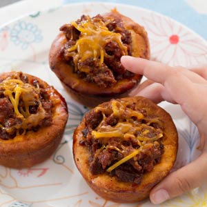 Divide the meat mixture among biscuit-lined muffins cups, using about 1/4 cup for each. Sprinkle with cheese.