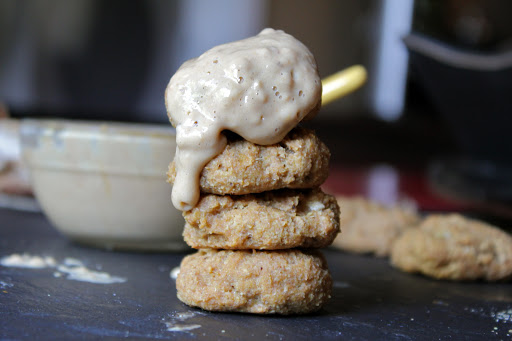 Nutritional Facts (makes 10 sandwiches, 20 cookies, per cookie 1/20th of recipe): Calories: 60, Total Fat: 3.6g, Sodium: 24.1mg, Potassium: 48.7mg, Total Carb: 6.2g, Dietary Fiber: 3g, Sugars 1.8g, Protein: 2.6g