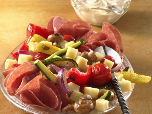 4 Arrange salami around edge of large serving platter. Mound grilled vegetables onto center of serving platter. Sprinkle cheese cubes over vegetables. Serve with aioli for dipping.